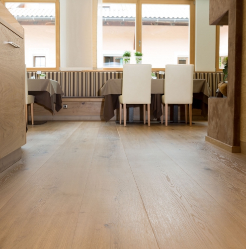 Eiche, der zur Zeit meist verlegte Holzboden, ermöglicht unzählige Variante in der Oberflächengestaltung wie Strukturierung und Farbgebung von weiß hin zu Naturtönen über sehr kräftige Brauntöne bis hin zu schwarz ist alles möglich ohne dass die Oberfläche künstlich aussieht.